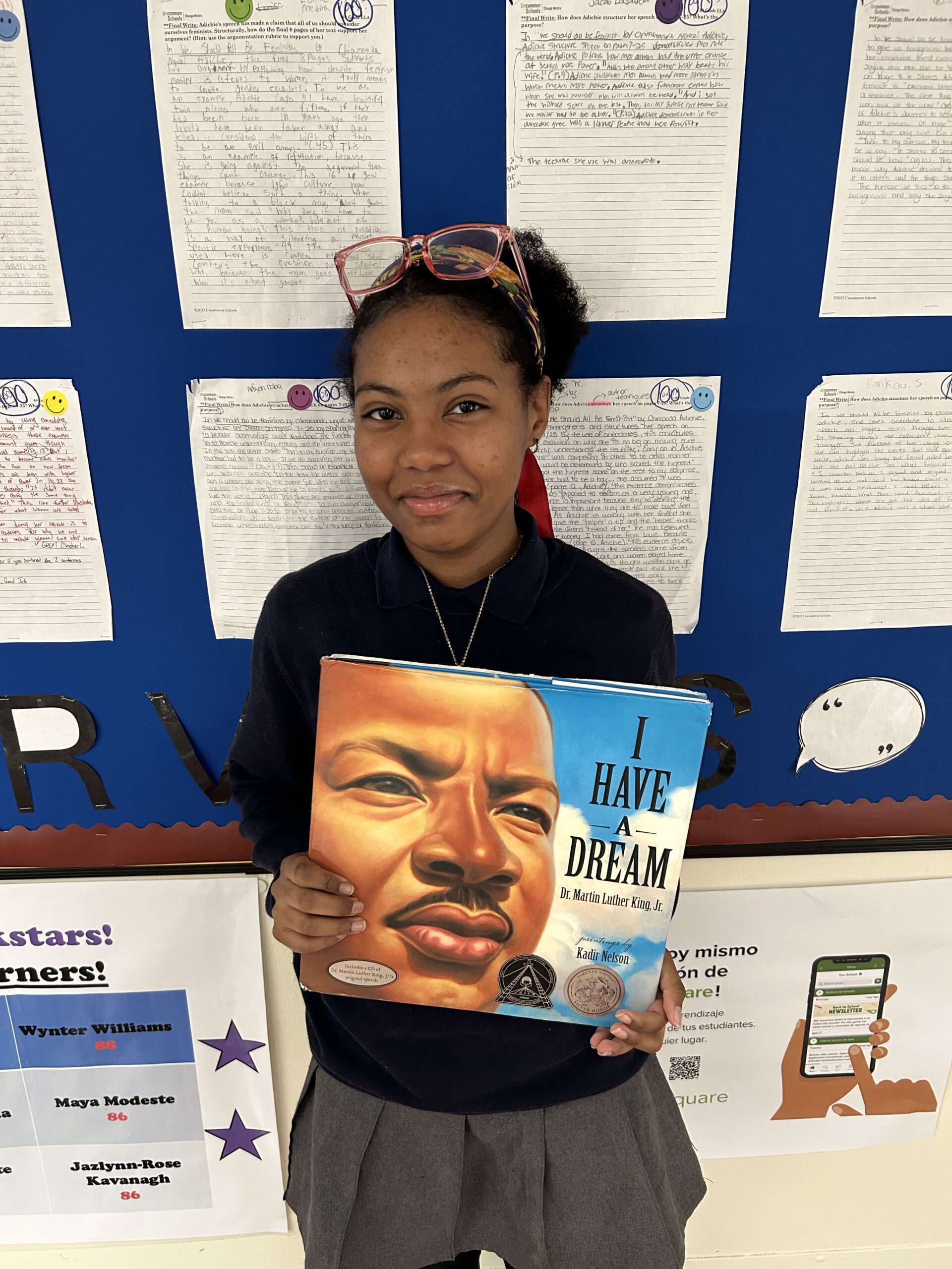 My name is Jazlynn, but I go by Jaz or Jazzy. I used to play in the Kings County Tennis League (KCTL) and got to meet Serena Williams. We talked about her career and journey to where she is today. My favorite book is the Smithsonian Timelines of the Ancient World by Christopher Scaree, simply because it includes various historical events from the Ice Age to the Inca and Maya empires. My hero isn’t just one person but my entire family because each of them inspires me to be my best self and teaches me to push through challenges, work hard, and seize my moment. When I grow up, I want to be a lawyer, mainly because throughout my life I have learned that everything is not fair. Not many people advocate for others, but I want to at least play a part in changing the world and helping others.